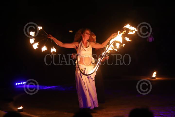 GUANAJUATO, GUANAJUATO, 27OCTUBRE2023.- La compañía francesa Mystica Salvaje La Salamandre presenta Hija de Hestia, en el foro al aire libre Pastutos durante la edición 51 del Festival Internacional Cervantino. FOTO: EDGAR NEGRETE LIRA/CUARTOSCURO.COM