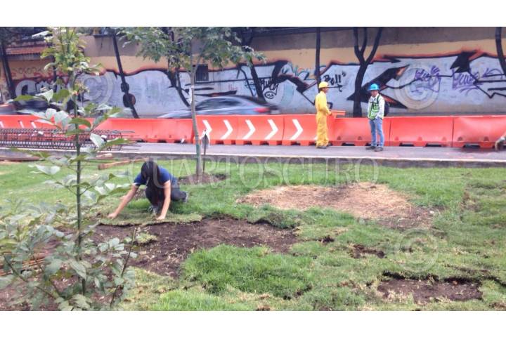 MÉXICO D.F. 26JULIO2015.- Vecinos de la colonia Florida y San José Insurgentes colocaron el pasto que trabajadores de obras retiraron para la construcción del deprimido de Mixcoac. FOTO SAÚL LOPEZ /CUARTOSCURO.COM