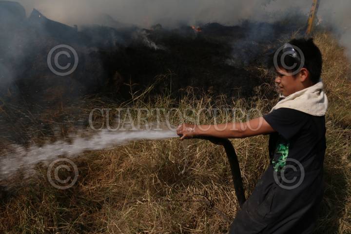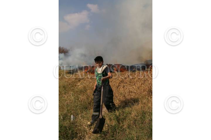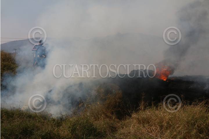 ECATEPEC, ESTADO DE MÉXICO., 02ENERO2016.- Bomberos de Ecatepec, sofocaron un incendio de pasto seco frente a la plaza comercial de las Americas. Uno de los bomberos que sofocaron las llamas fue un niño de trece años llamado Edgar que acompaño a los vulcanos como voluntario. FOTO: SAÚL LÓPEZ /CUARTOSCURO.COM