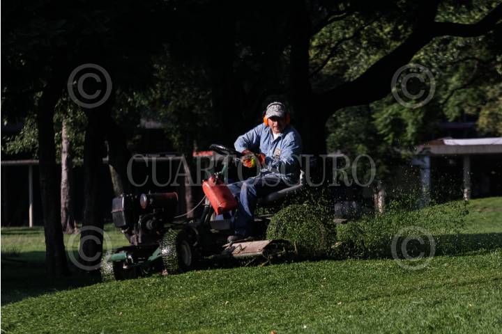 CIUDAD DE MÉXICO, 07AGOSTO2017.- Un trabajador de la UNAM poda el pasto de la zona conocida como las Islas, frente a la Facultad de Derecho. FOTO: ISAAC ESQUIVEL /CUARTOSCURO.COM