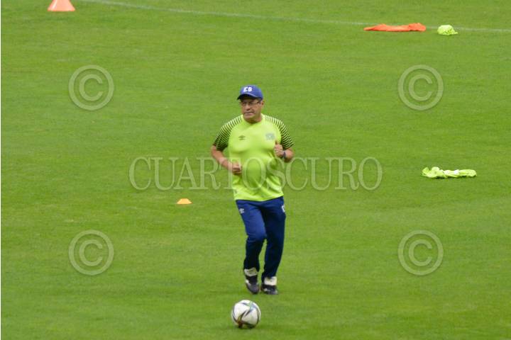 Hugo Pérez, director técnico de la Selección de El Salvado durante el reconocimiento de cancha en el Estadio Azteca previo a su enfrentamiento del próximo 30 de marzo frente a la Selección Nacional Mexicana como parte de las eliminatorias de la Copa del Mundo Qatar 2022.