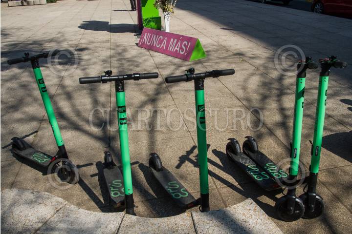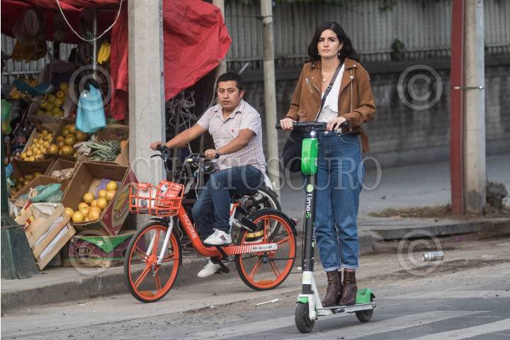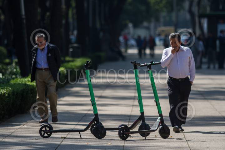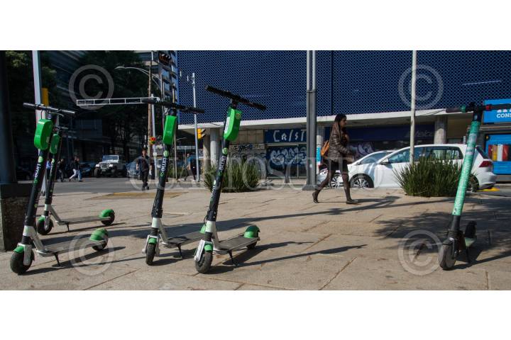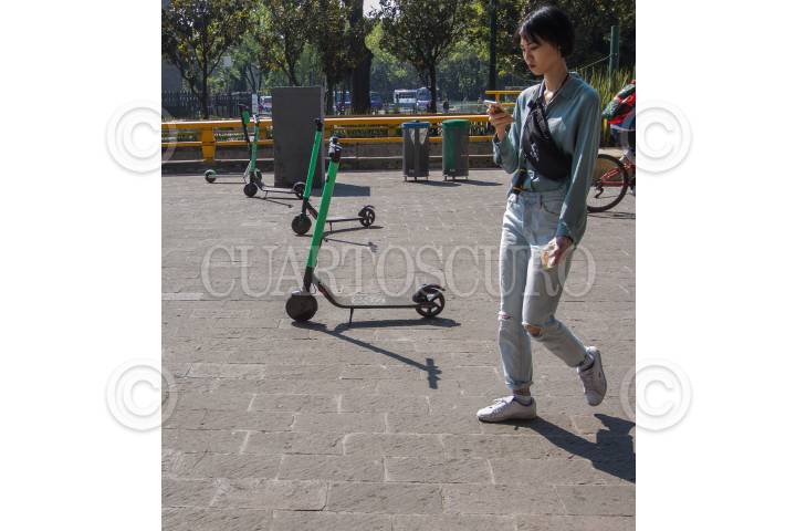 CIUDAD DE MÉXICO, 29ENERO2019.- La falta de regulación en los patines eléctricos de alquiler y las bicicletas sin anclaje comienzan a generar problemas en las calles de la ciudad, ya que son abandonados en cualquier lugar o son utilizados sin respetar el reglamento de tránsito. FOTO: ISAAC ESQUIVEL /CUARTOSCURO.COM