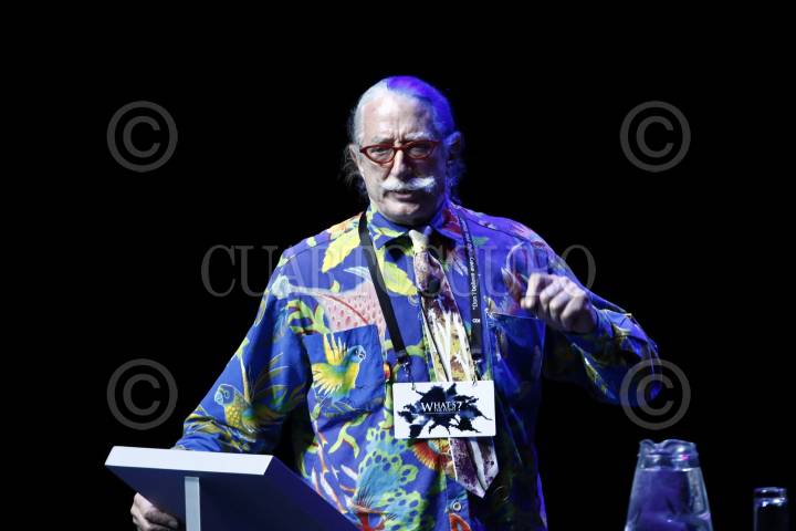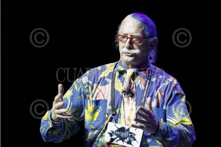 PUEBLA, PUEBLA, 05MAYO2015.- El médico estadounidense creador de la risa terapia Patch Adams participó en el primer día de las conferencias del "Festival de las Mentes Brillantes" Ciudad de las Ideas (CDI) realizado en el Auditorio Metropolitano de Puebla. FOTO: HILDA RÍOS /CUARTOSCURO.COM