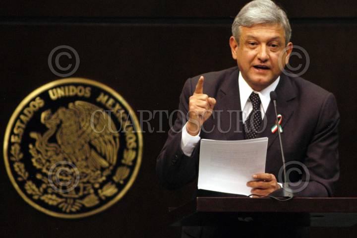 MEXICO, D.F., 07ABRIl2005.- Andrés Manuel López Obrador, jefe de gobierno, se presentó ante el pleno de la Cámara de Diputados que se erigió en Jurado de Procedencia, para decidir si se le retira el desafuero, en el caso de desacato a una orden judicial en el caso del predio del Encino. FOTO: Moisés Pablo/CUARTOSCURO.COM