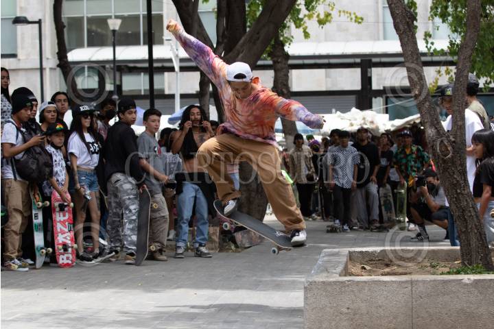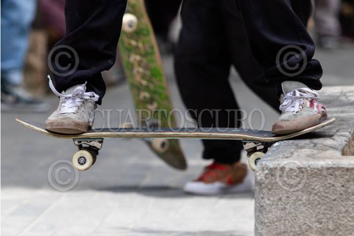 CIUDAD DE MÉXICO, 21JUNIO2024.- Jóvenes "skaters" se reunieron en la Plaza del Zócalo para patinar y convivir. Lo anterior en el marco de Día Internacional del Skate. FOTO: PEDRO ANZA/CUARTOSCURO.COM