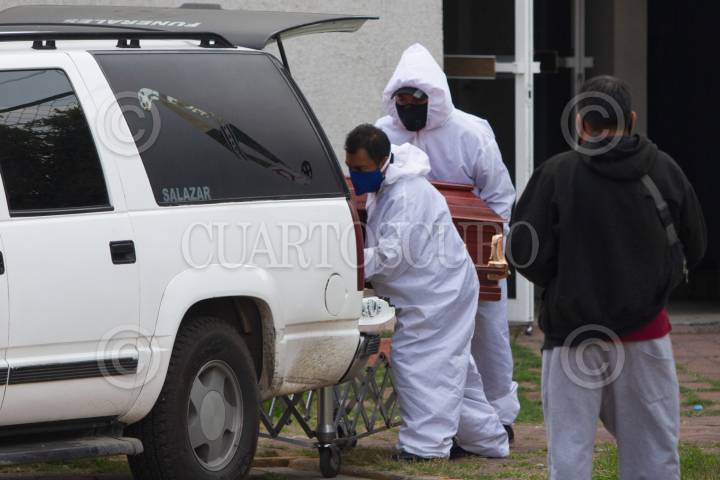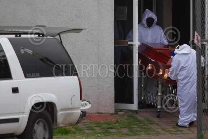 Trabajadores de una funeraria cargaron un ataúd de una persona con Covid-19 en el Área de Patología del Hospital General Tláhuac