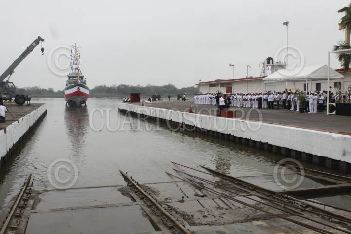 TAMPICO, TAMAULIPAS, 01MARZO2014.- La Secretaría de Marina encabezo la ceremonia de botadura de la patrulla costera "Armada República Mexicana Palenque PC-333" en el Astillero de Marina no. 1. FOTO: MOISÉS PABLO /CUARTOSCURO.COM