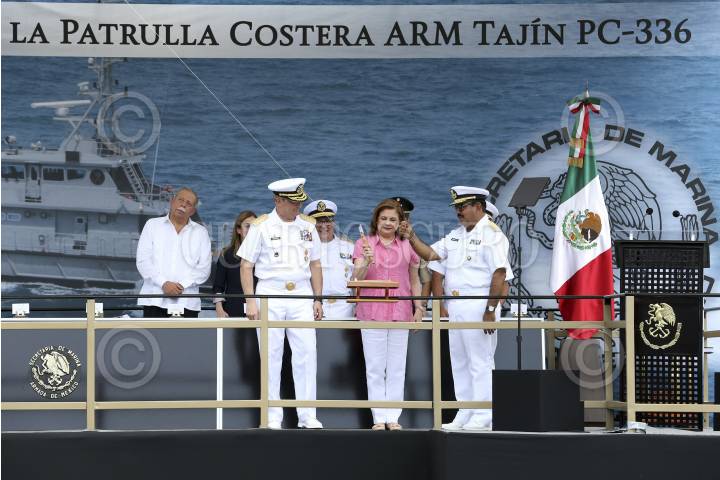 TAMPICO, TAMAULIPAS, 11JULIO2016.- Fue realizada en el astillero de la Marina la ceremonia de botadura de la patrulla costera "Arm Monte Albán (PC-338)" en la margen del Rio Panuco. La directora general de la Comisión Nacional de los Pueblos Indígenas, L.C. Nuvia Mayorga Delgado fungió como la madrina de este navío en compañía del Secretario de Marina, Vidal Fransisco Soberón Sanz, Autoridades Navales, Militares Federales, Estatales y Municipales de Tampico y Tamaulipas. FOTO: ADOLFO VLADIMIR /CUARTOSCURO.COM