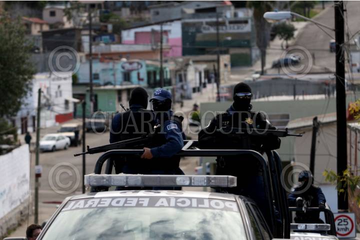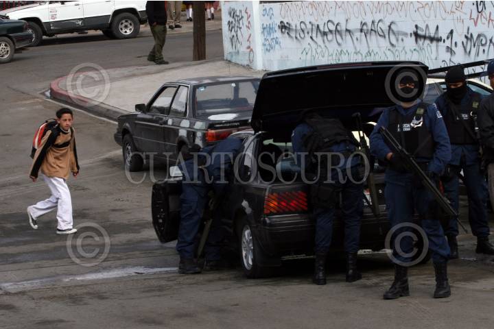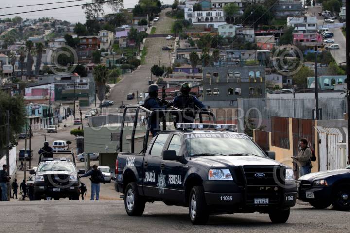 TIJUANA, B.C. NORTE, 21ENERO2008.Tras el enfrentamiento ocurrido hace unos días entre narcotraficantes y elementos del ejercito, Elementos de la Policía Federal Preventiva patrullan y vigilan las calles de esta ciudad. FOTO: GUILLERMO PEREA/CUARTOSCURO.COM