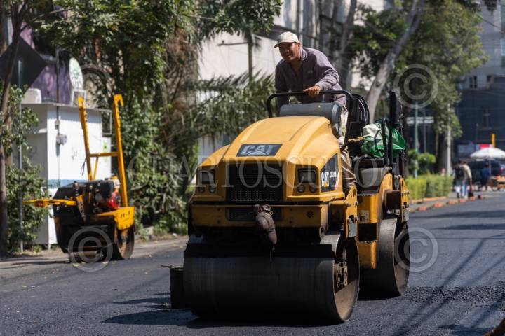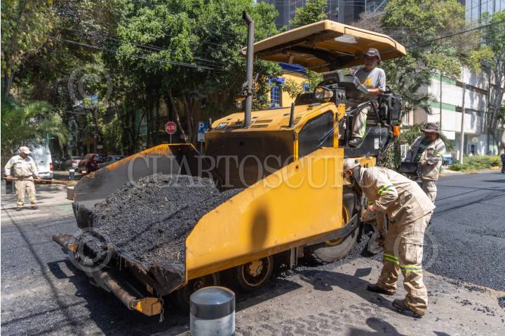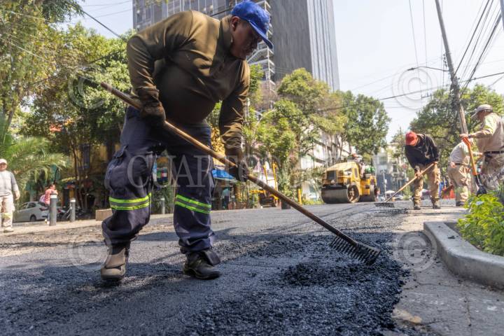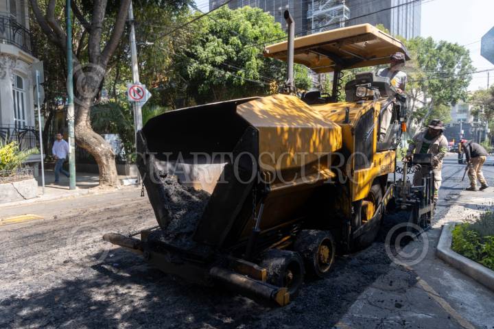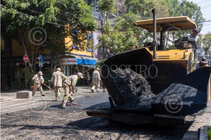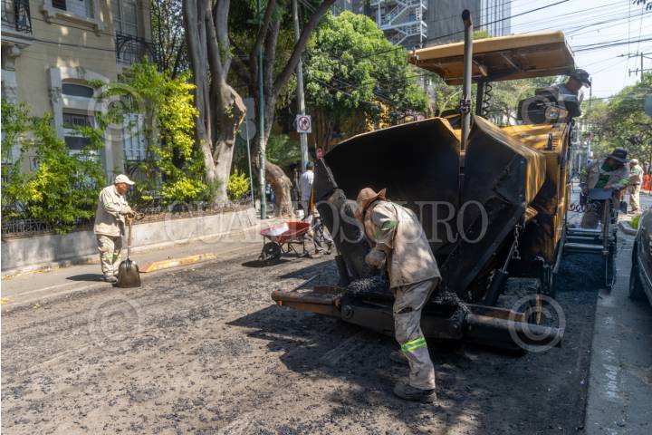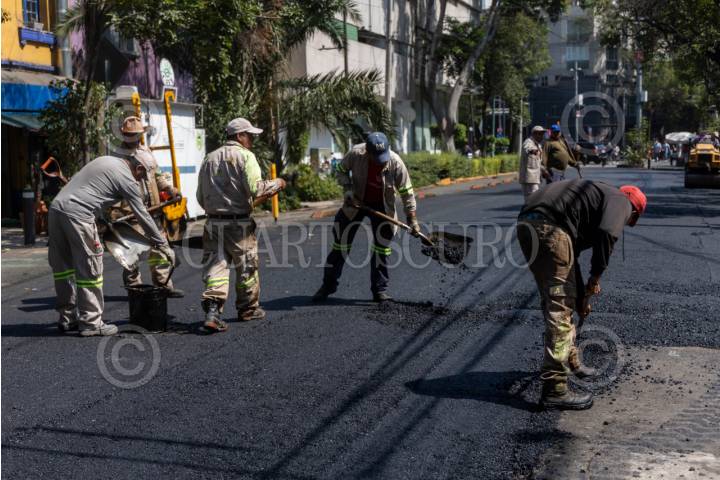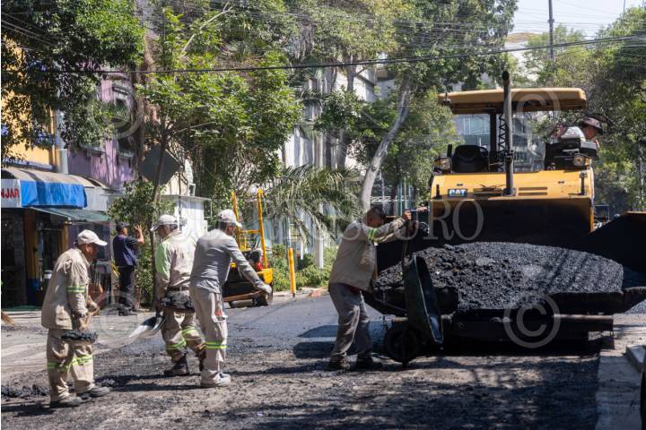 CIUDAD DE MÉXICO, 07ABRIL2025.- Trabajadores del Gobierno de la Ciudad de México pavimentan calles de la colonia Roma, en e marco del programa Mega Bachetón 2025, el cual según en pablaras de la Jefa de Gobierno acabará con los baches en las vías primarias en la Ciudad de México antes de la temporada de lluvias. FOTO: MOISÉS PABLO/CUARTOSCURO.COM