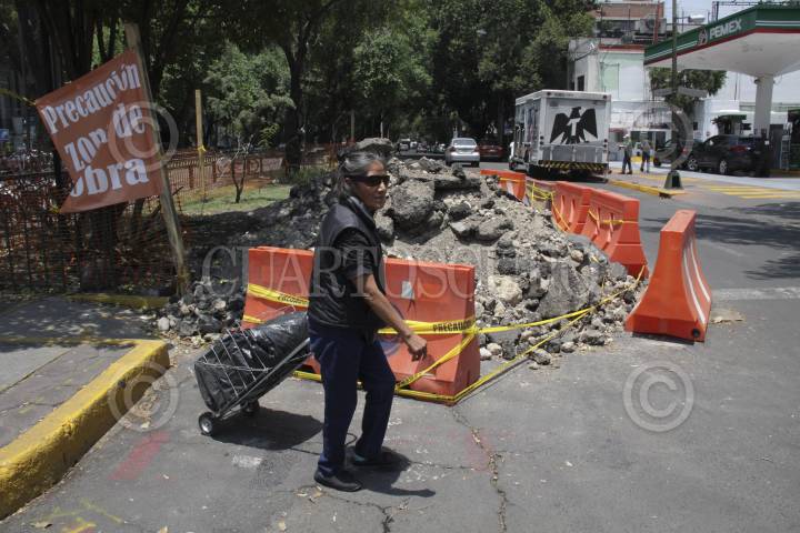CIUDAD DE MÉXICO, 25MAYO2016.- La secretaria de obras publicas de la CDMX dejo inconclusa la reparación del pavimento de las calles de Durango y Veracruz, colonia Condesa, impidiendo el paso a peatones. FOTO: ANTONIO CRUZ /CUARTOSCURO.COM