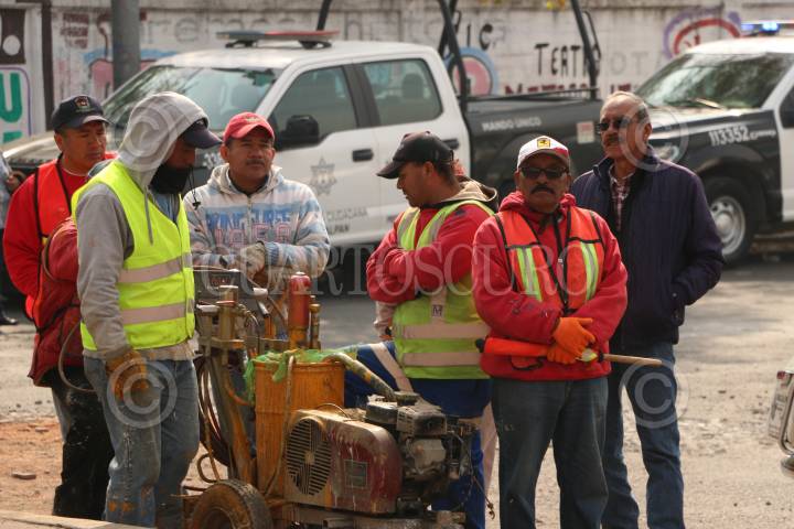 CIUDAD DE MÉXICO, 01AGOSTO2019.- Trabajadores del gobierno de la Ciudad de México trabajan resanando el asfalto de la calle de Luis Mayo, entre la calle de Independencia y avenida Juárez, en esta temporada de lluvias se agrava el problema de baches que padecen las vialidades en la capital. FOTO: MOISÉS PABLO /CUARTOSCURO.COM