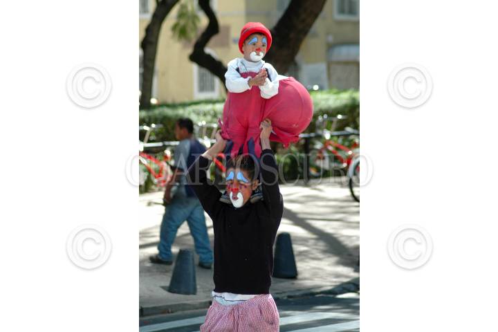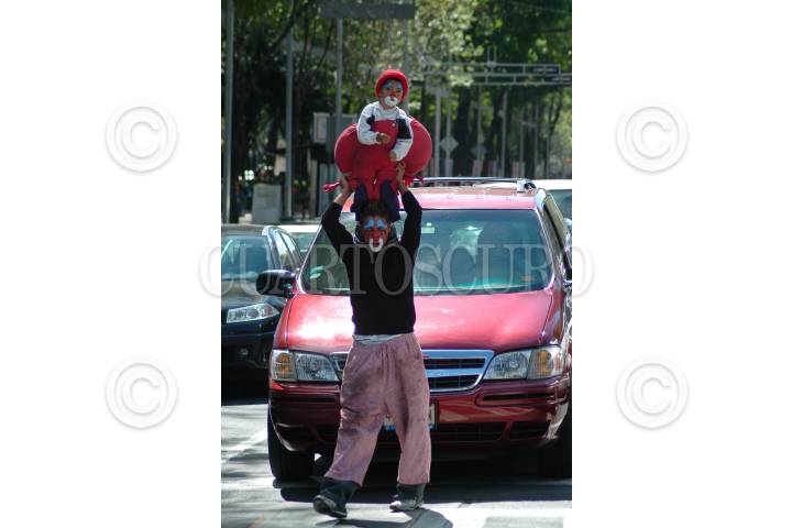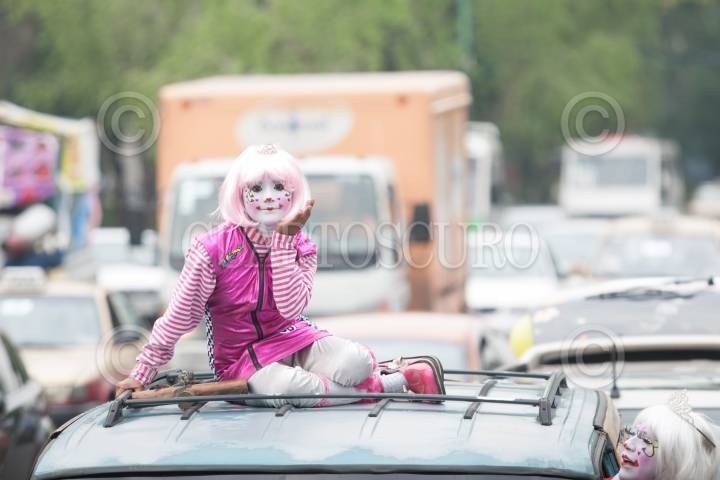 MÉXICO, D.F., 20FEBRERO2010.- Un par de payasitos trabajan pidiendo dinero en un crucero en calles de la ciudad. FOTO: RODOLFO ANGULO/CUARTOSCURO.COM
