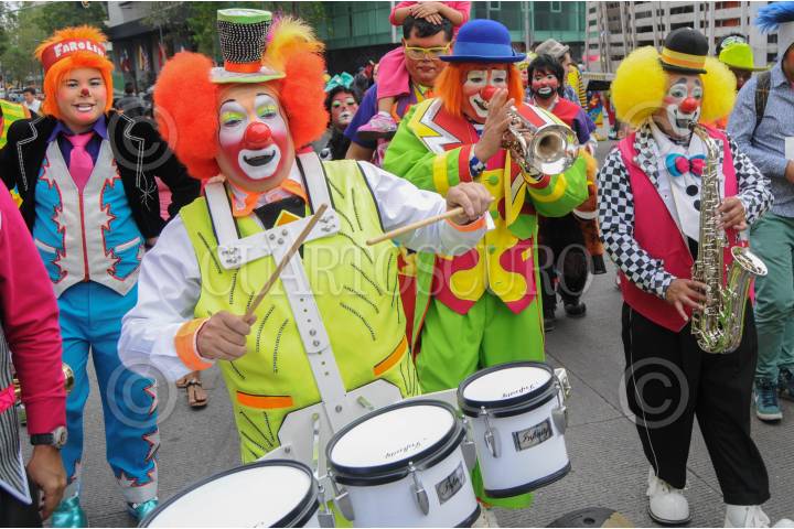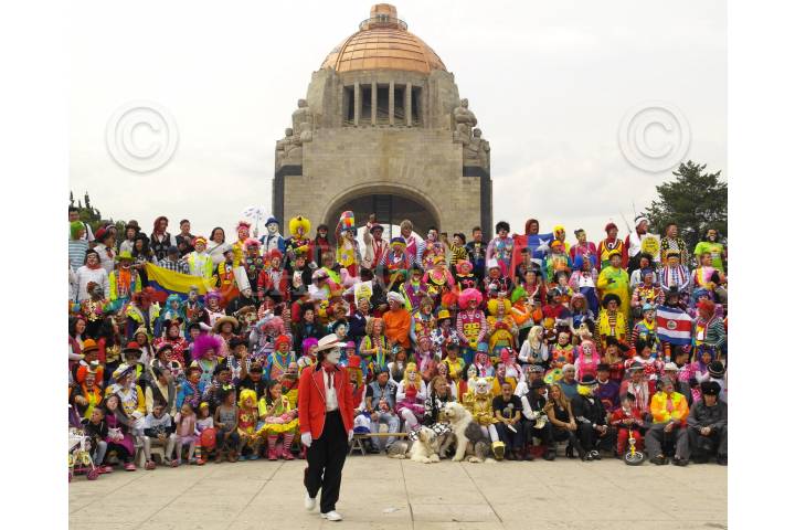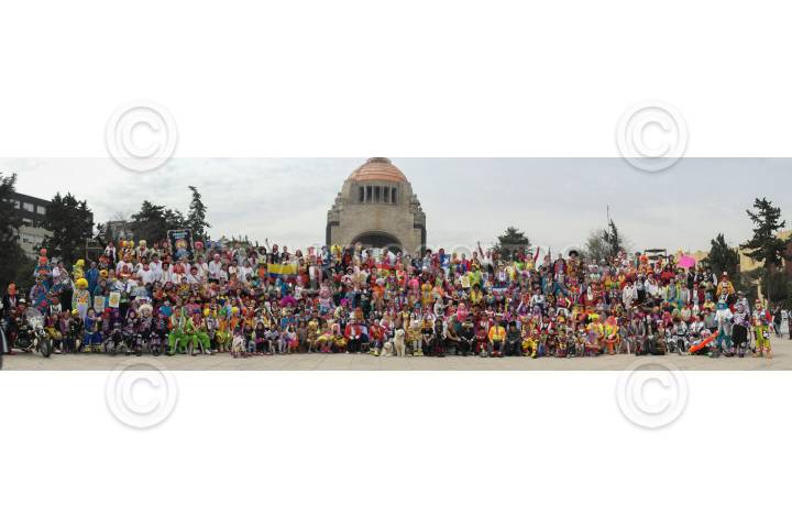 MÉXICO, D.F., 21OCTUBRE2015.- Al rededor de 200 payasos clausuraron la Vigésima Convención Internacional de Payasos con una comparsa al rededor del Monumento a la Revolución y una fotografiá panoramica con payasos del interior de la república así como de Perú, El Salvador, Honduras, República Dominicana, Guatemala, Belice, Nicaragua, Ecuador, Estados Unidos, Reino Unido. FOTO: SAÚL LÓPEZ /CUARTOSCURO.COM