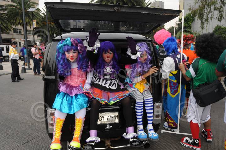 MÉXICO, D.F., 21OCTUBRE2015.- Al rededor de 200 payasos clausuraron la Vigésima Convención Internacional de Payasos con una comparsa al rededor del Monumento a la Revolución y una fotografiá panoramica con payasos del interior de la república así como de Perú, El Salvador, Honduras, República Dominicana, Guatemala, Belice, Nicaragua, Ecuador, Estados Unidos, Reino Unido. FOTO: CUARTOSCURO.COM