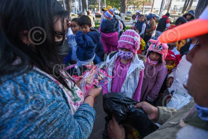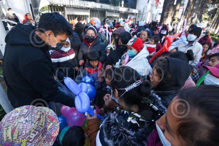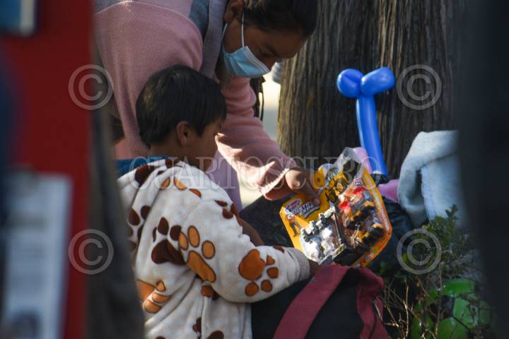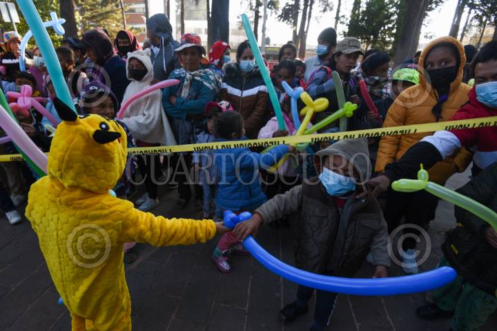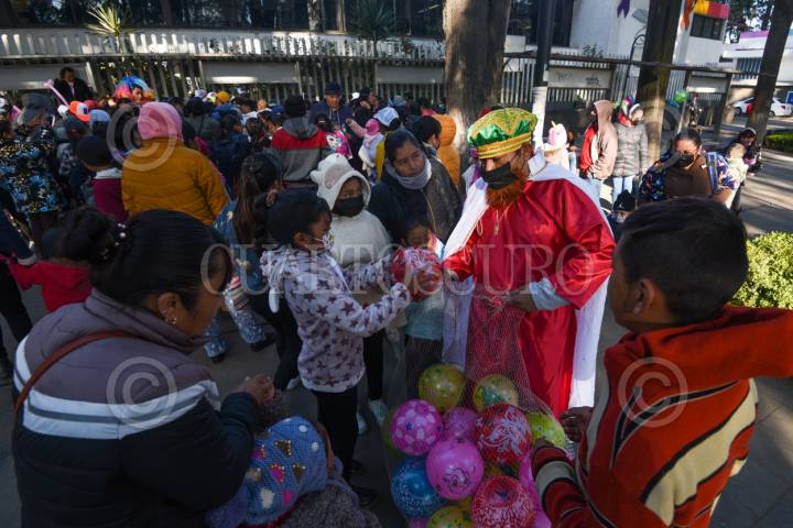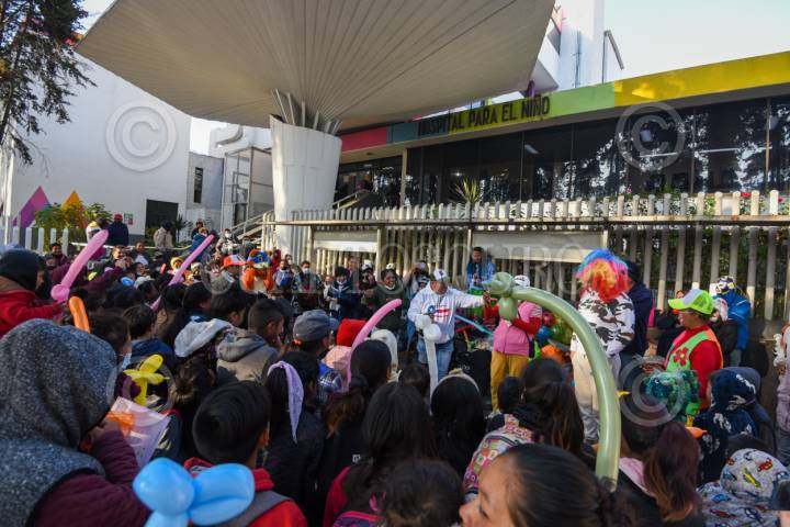 TOLUCA, ESTADO DE MÉXICO, 06ENERO2025.- Este Día de Reyes integrantes de la fundación Payasonicos al Rescate acudieron al Hospital para el Niño en Toluca a entregar dulces, pelotas y ropa a niños y adultos, llevan 16 años con esta labor, también acuden a otros hospitales, albergues para migrantes y también apoyan a personas en situación de calle; inician con una lluvia de dulces, risoterapia en donde involucran a niños y papás y hacen que pasen un rato ameno, entregan los juguetes y ropa. Llevan un pico de felicidad a las familias que se encuentran afuera del hospital que esperan informes sobre su paciente. FOTO: CRISANTA ESPINOSA AGUILAR /CUARTOSCURO.COM