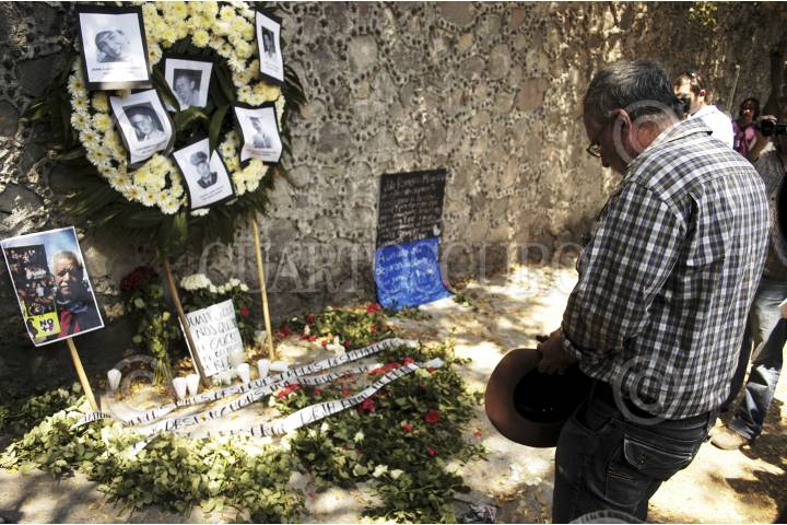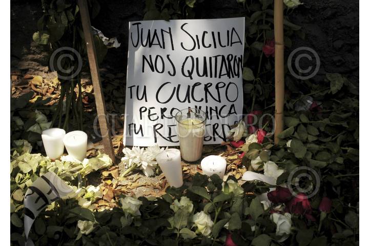TEMIXCO, MORELOS, 28MARZO2012.- El movimiento por Paz con Justicia y Dignidad, llevó una ofrenda en memoria de Juan Francisco Sicilia, Gabriel, Luis Antonio, Julio Cesar, Jesus, Alvaro y Maria del Socorro, asesinados hace un año en el fraccionamiento de las Brisas y que creó el movimiento lidereado por el poeta Javier Sicilia. FOTO: ADOLFO VLADIMIR/CUARTOSCURO.COM