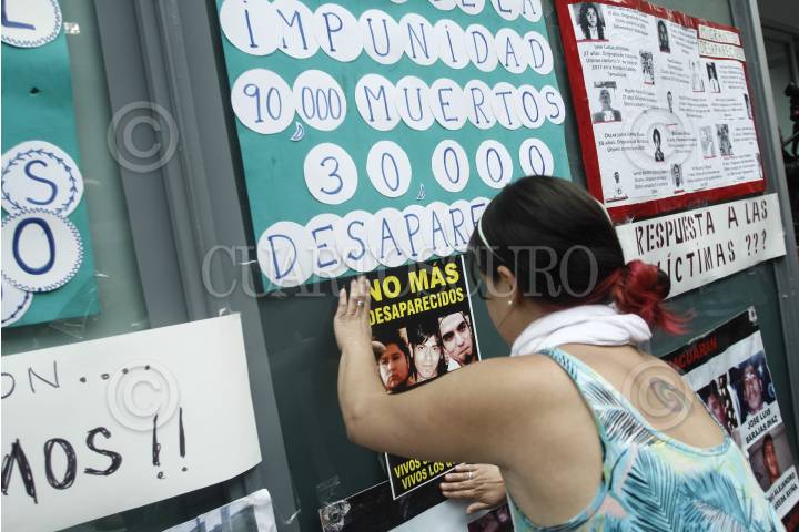 MÉXICO, D.F. 30AGOSTO2013.- integrantes del Movimiento por la Paz con Justicia y Dignidad; Movimiento de Desaparecidos y familiares del Caso Heaven protestaron a las afueras de la Subprocuraduría de Derechos Humanos de la PGR, en el marco del Día Internacional de las Victimas de Desaparición Forzada. FOTO: RODOLFO ANGULO /CUARTOSCURO.COM