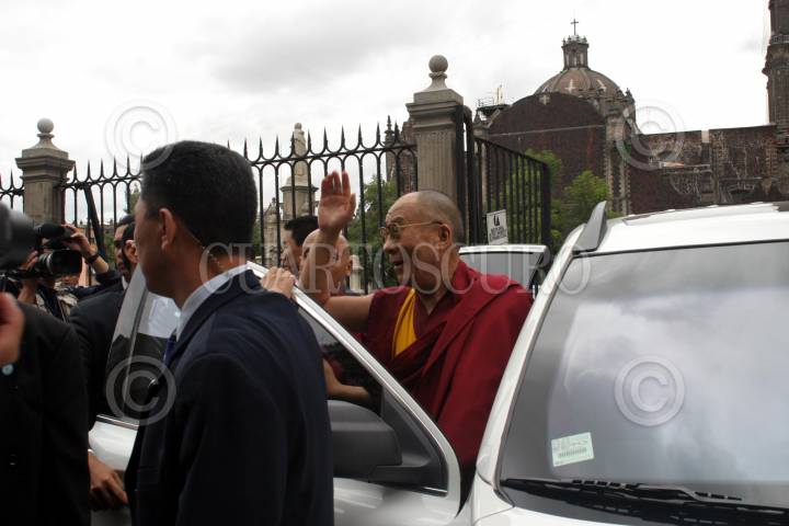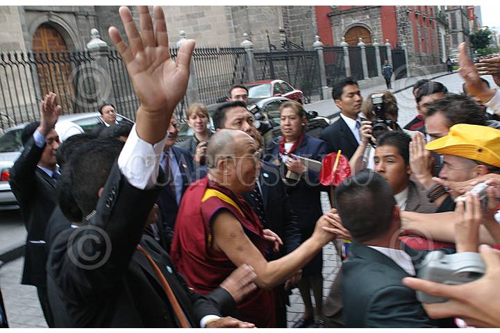 México, D.F. OCTUBRE 2004.- El Dalai Lama, lider espiritual del pueblo del Tibet, se despide de sus seguidores a la salida de la catedral metropolitana donde realizó la ceremonia "plenaria por la paz". FOTO: Sandra Perdomo/CUARTOSCURO.COM