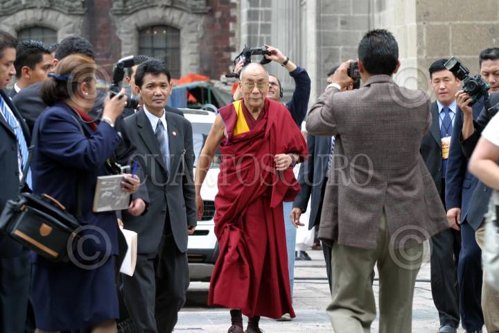 México, D.F. OCTUBRE 2004.- Rodeado de elementos de seguridad, el Dalai Lama, lider espiritual del pueblo del Tibet, se retira de la catedral metropolitana, luego de realizar la ceremonia "plegaria por la paz". FOTO: Sandra Perdomo/CUARTOSCURO.COM