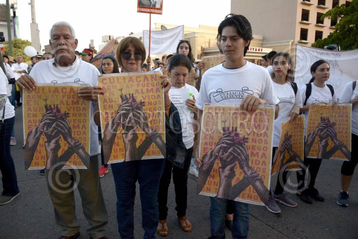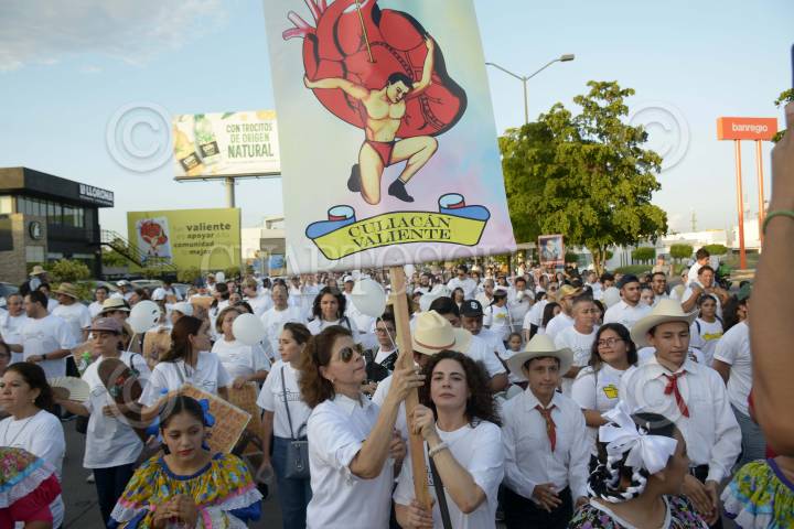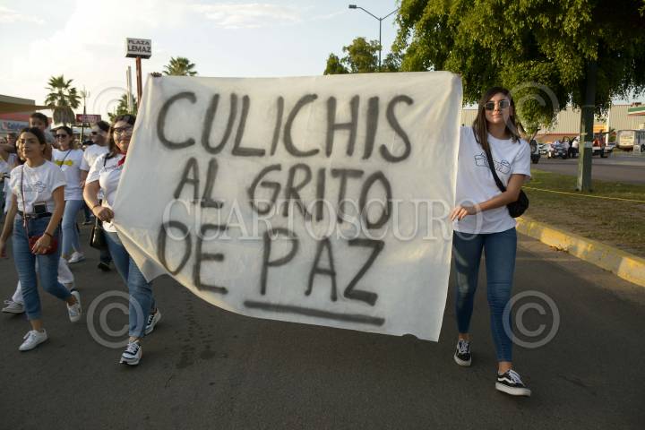 CULIACÁN, SINALOA, 27OCTUBRE2019.- Cerca de 2 mil personas participaron en la marcha "Culiacán valiente" este día para exigir paz en la ciudad, a 10 días de la violenta toma de Culiacán, parte de sicarios del Cártel de Sinaloa que obligaron al gobierno a liberar a Ovidio Guzmán, hijo del narcotraficante Joaquín El Chapo Guzmán. La marcha inició frente al estadio de los Dorados, avanzó por el bulevar Enrique Félix Castro y luego enfiló por el bulevar Enrique Sánchez Alonso, hasta el asta bandera, en el Parque Las Riberas. En toda esta zona fue donde se suscitaron los mayores enfrentamientos del pasado 17 de octubre. FOTO: JUAN CARLOS CRUZ /CUARTOSCURO.COM