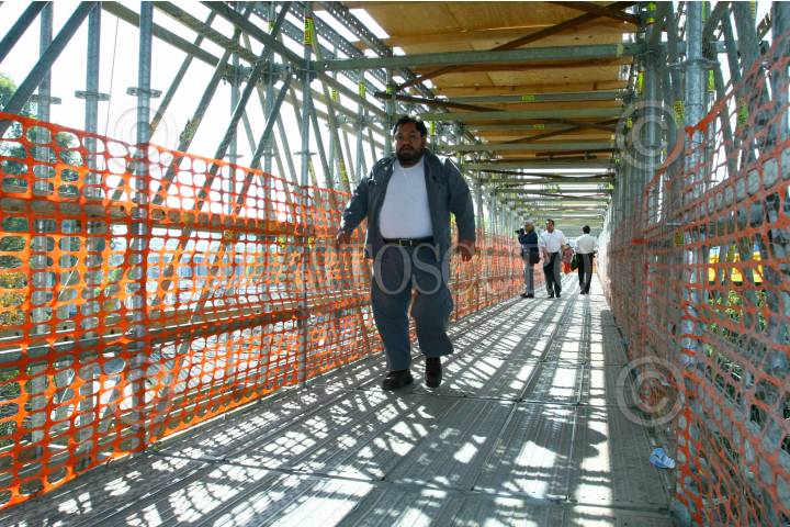 MEXICO, D.F. 19MARZO2007.- Elias Brisuelas Moreno, secretario de obras y Oscar Roa, director general de protección civil relizaron un recorrido por los puentas peatonales provisionales en Periférico, colonia Alfonso XIII. FOTO: NELLY SALAS/CUARTOSCURO.COM