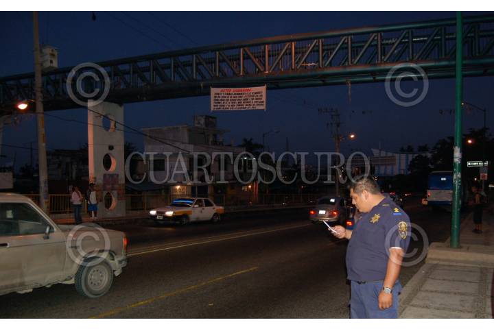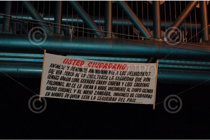ACAPULCO, GUERRERO, 01NOVIEMBRE2008.- Esta madrugada la policía Estatal encontró y retiro dos mantas mensajes hacia la ciudadanía en general, colocadas en puentes peatonales de la avenida Cuauhtémoc y otra mas sobre el boulevard Vicente Guerreros, se presume que fueron colocadas por el crimen organizado. FOTO: MARINO D. VALDEZ/CUARTOSCURO.COM