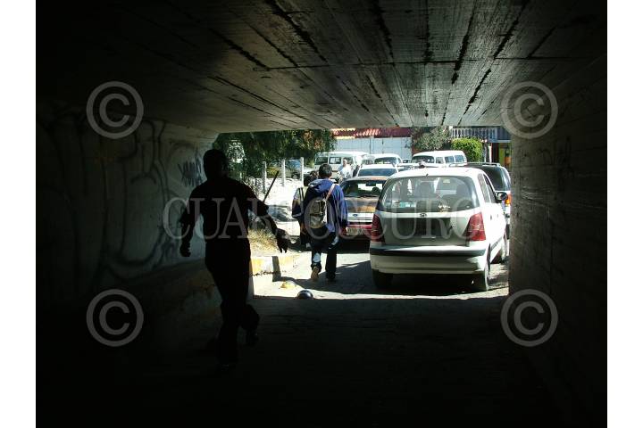 Chilpancingo, Guerrero, 18ABRIL2005.- A pesar que las estadisticas indican que el mayor numero de muertes es a causa de atropellamiento o muerte imprudencial en la ciudad, muchas personas lo ignoran cruzando las avenidas con sus hijos, haciendo caso omiso a los puentes peatonales. Foto: Oscar Alvarado/CUARTOSCURO.COM