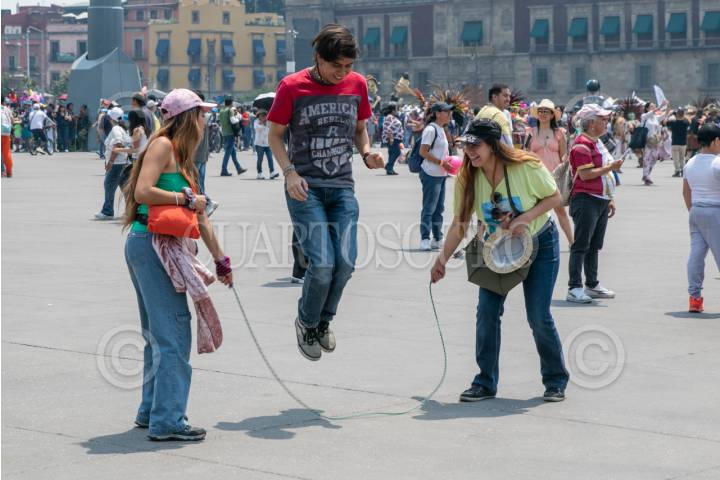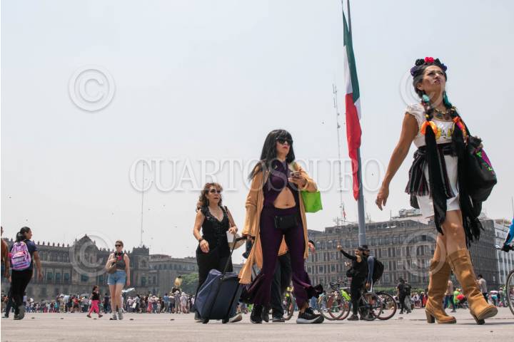 CIUDAD DE MÉXICO, 12MAYO2024.- Comparsas con diferentes temáticas participaron en la apertura del proyecto Zócalo Peatonal, este proyecto privilegia a la movilidad peatonal en una de las zonas más concurridas y reconocidas de la capital. FOTO: MOISÉS PABLO/CUARTOSCURO.COM