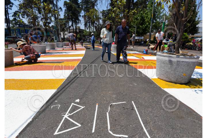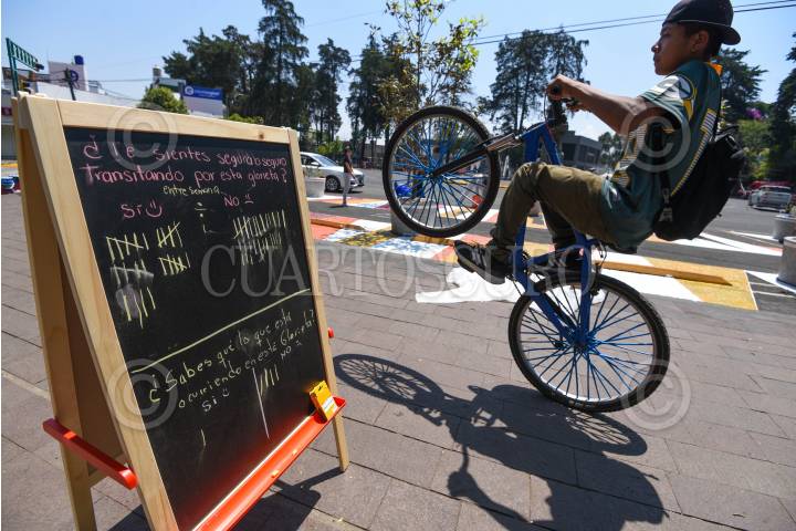 TOLUCA, ESTADO DE MÉXICO, 26MAYO2024.- Integrantes de “Si a la Ciclovía Toluca” realizaron este domingo urbanismo táctico con el objetivo de recuperar espacios públicos para peatones y ciclistas, en esta ocasión interviniendo la Glorieta de El Águila. FOTO: CRISANTA ESPINOSA AGUILAR /CUARTOSCURO.COM