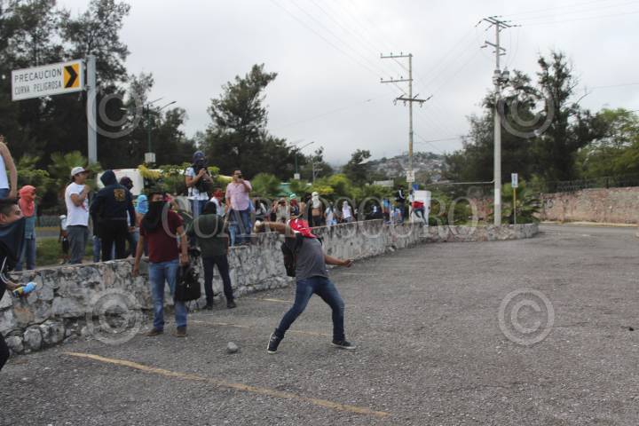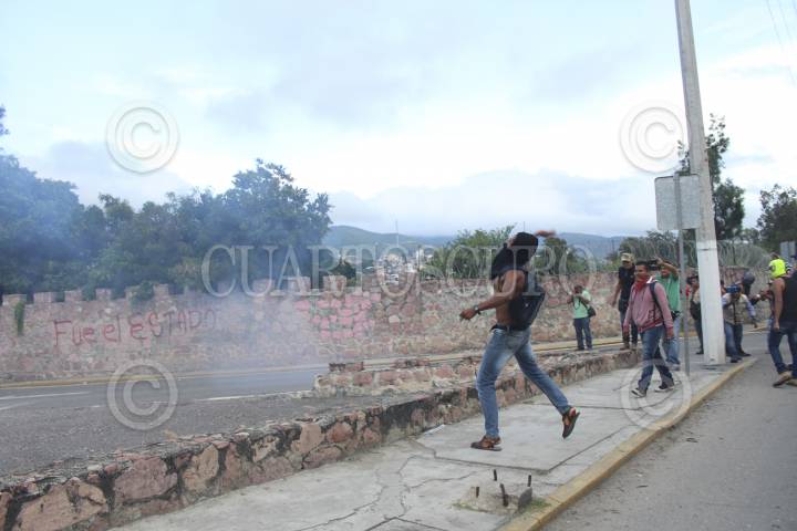 CHILPANCINGO, GUERRERO, 25SEPTIEMBRE2018.- Estudiantes normalistas de Ayotzinapa arrojaron petardos y piedras a la 35 zona militar en Chilpancingo, como parte de la acción global que realizan para exigir la presentación con vida de sus 43 compañeros a cuatro años de su desaparición forzada por policías municipales de Iguala e integrantes de la delincuencia organizada la noche del 26 y madrugada del 27 de septiembre en la ciudad de Iguala. FOTO: JESÚS GUERRERO /CUARTOSCURO.COM