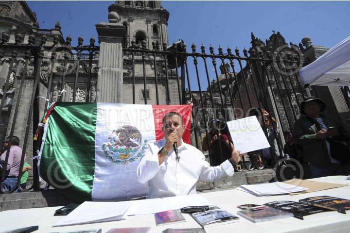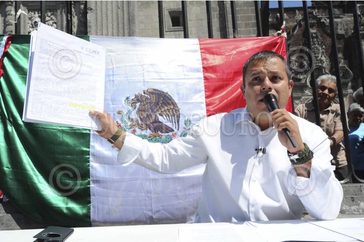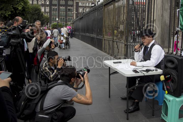 CIUDAD DE MÉXICO, 26FEBRERO2017.- Pedro Pablo de Antuñano, ex director Jurídico y de Gobierno de la delegación Cuauhtémoc, se declaró inocente del delito del delito de enriquecimiento ilícito, tras se exonerado por la Procuraduría de la CDMX, quien lo investigaba luego de que en septiembre de 2016 le encontraran 600 mil pesos en efectivo en el auto que conducía. El ex funcionario ofreció una conferencia en las rejas de la catedral Metropolitana. FOTO: ARMANDO MONROY /CUARTOSCURO.COM
