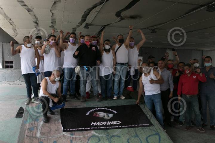 Pedro Pablo de Antuñano, dirigente local de Redes Sociales y Progresistas (RSP), presentó a un grupo de jóvenes con la cabeza rapada, quienes forman parte de lo que él denominó "Grupo de Autodefensa Electoral Mastines".