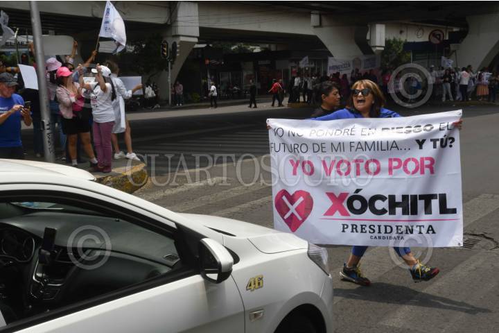 CIUDAD DE MÉXICO, 26ABRIL2024.- Simpatizantes de Xóchitl Gálvez, candidata a la Presidencia de la República por la Coalición Fuerza y Corazón por México, en el cruce de las avenidas Universidad y Río Churubusco. FOTO: MARIO JASSO/CUARTOSCURO.COM