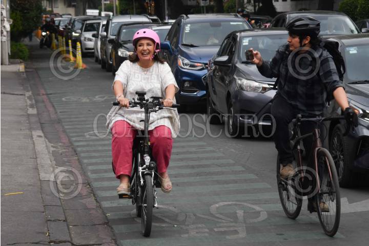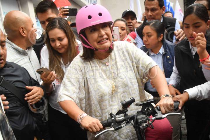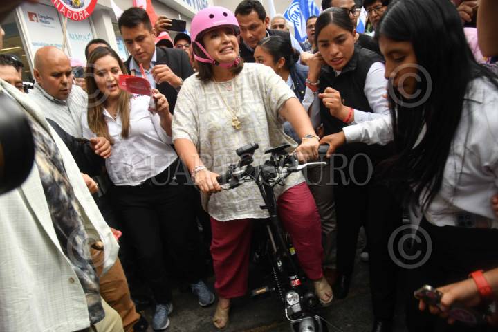 CIUDAD DE MÉXICO, 26ABRIL2024.- Xóchitl Gálvez, candidata a la Presidencia de la República por la Coalición Fuerza y Corazón por México, durante su llegada al intento de "pega de microperforados" en el cruce de las avenidas Universidad y Río Churubusco en el cual no participó debido a la alta concentración de medios de comunicación y simpatizantes. FOTO: MARIO JASSO/CUARTOSCURO.COM