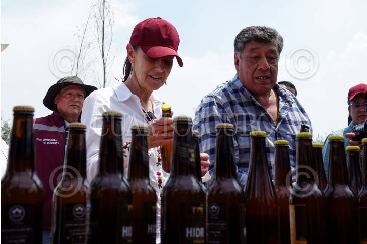 Claudia Sheinbaum durante el recorrido por los trabajos de CODENADR en el Vivero Forestal y Humedal de San Luis Tlaxialtemalco en Xochimilco.