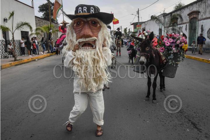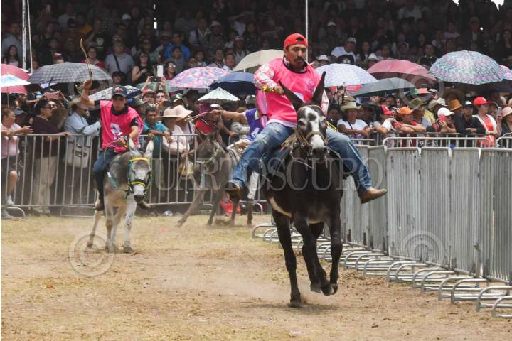OTUMBA, ESTADO DE MÉXICO, 01MAYO2024.- En Otumba cada primero de mayo se celebra el Día del Burro por ser “el animalito más trabajador” (en el marco del “día del trabajo”) rindiendo homenaje a través de la "Feria Nacional del Burro" que en este año celebra su edición 59, el cual cuenta con exhibiciones y competencias que resaltan la importancia y versatilidad de los burros, ligados como un símbolo de trabajo, lealtad y nobleza con las raíces de la comunidad. El festival que dura cinco días (del 27 de abril al primero de mayo) comienza con un desfile de personas y automóviles disfrazados de burro quienes rodean las principales avenidas del centro. En los tres días restantes la experiencia de los asistentes se complementa con juegos mecánicos, exposiciones agropecuarias, pabellón comercial con venta de artesanías y gastronomía, además de la atracción principal el "burrodromo", donde se realizan partidos de polo sobre burro, concursos de: rebuzno, adorno y carrera de burros, para que los habitantes pueden apreciar la creatividad y cariño que los participantes muestran para exaltar su admiración por estos animales. Con estas actividades se resalta la identidad y la herencia cultural que la comunidad de Otumba ofrece. FOTO: MARIO JASSO/CUARTOSCURO.COM