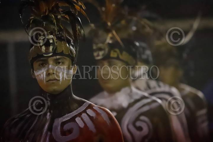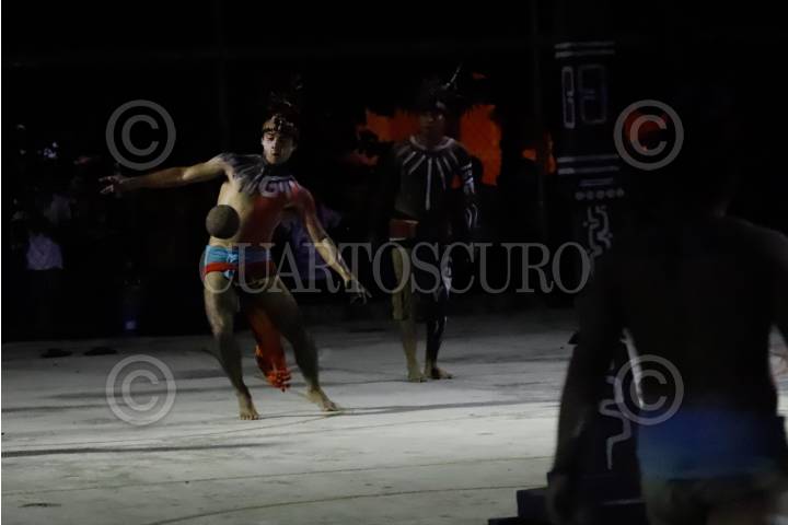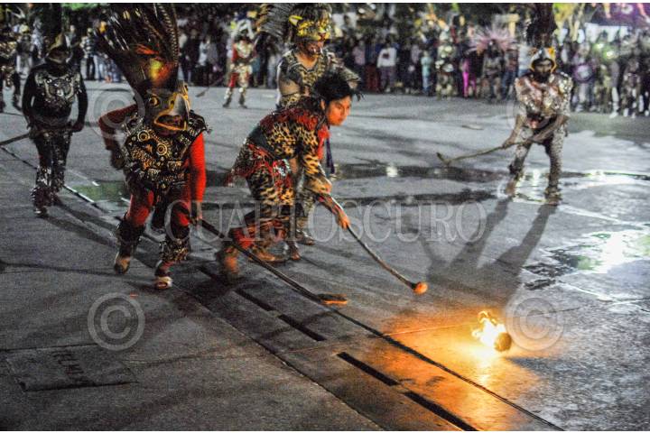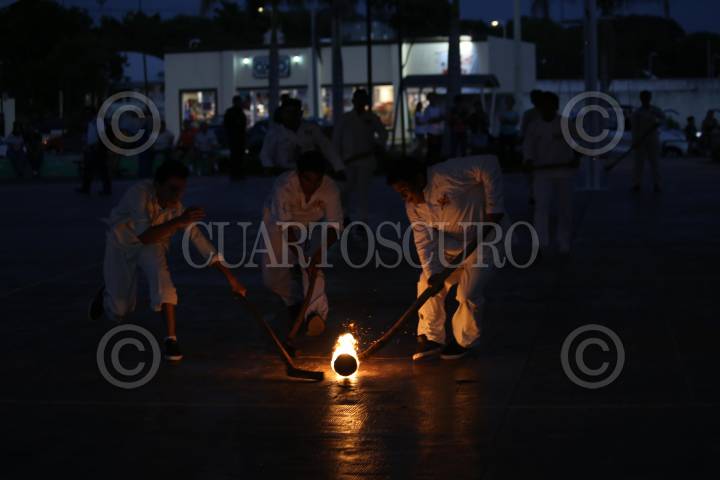 CHILPANCINGO, GUERRERO, 21DICIEMBRE2017.- Imágenes del juego de pelota prehispánico Águilas contra Jaguares, que se llevó acabo en la plaza primer Congreso de Anáhuac, como parte de Juegos Tradicionales que organiza los integrantes de Calpulli Tecuanichan. FOTO: JOSÉ I. HERNÁNDEZ / CUARTOSCURO.COM