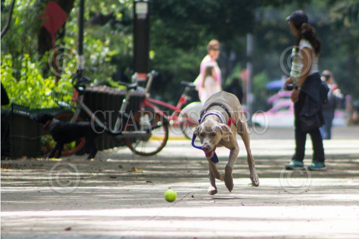 CIUDAD DE MÉXICO, 18OCTUBRE2018.- Un Braco de Weimar persigue una pelota en las calles de la colonia Condesa. FOTO: RODRIGO RUBIO /CUARTOSCURO.COM