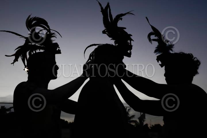 CAMPECHE, CAMPECHE, 25JULIO2018.- Como parte de las actividades para despedir al año viejo en el calendario Maya, regido por Bakab Rojo representante del Oriente, abandonando el último día del Wayeb- días de reflexión-, un grupo de mayistas de la entidad realizó el ritual de juego de pelota Maya y Purepecha, entre otras actividades. A partir de mañana iniciara una nueva etapa según el calendario de los mayas-Cero Póop, 13 Kánkínin (año 5133). FOTO: MARTÍN ZETINA /CUARTOSCURO.COM