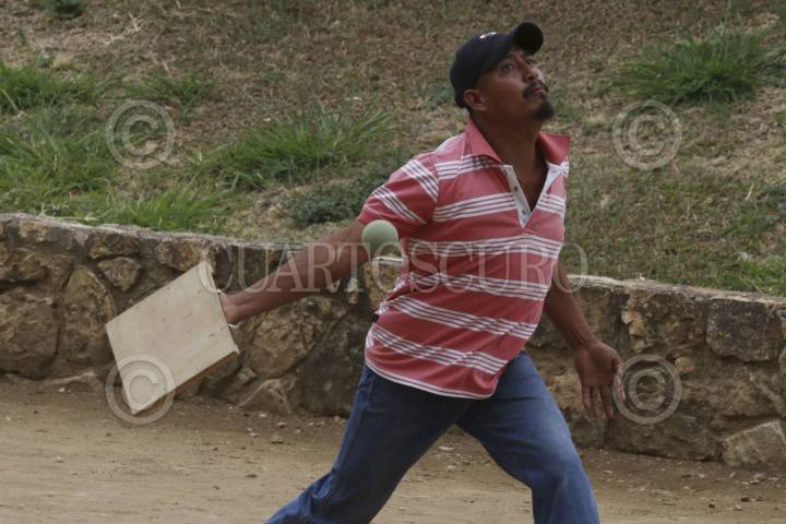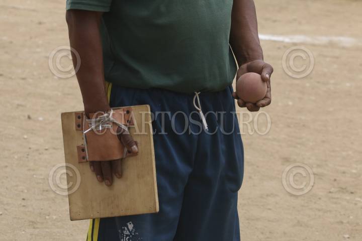 OAXACA, OAXACA, 15MARZO2015.- Uno de los deportes más antígüos de México es la "Pelota Mixteca" que aún y cuando fue un deporte surgido en el norte del país en la época prehispánica, se le denominó con ese nombre debido a que habitantes de la región de la Mixteca oaxaqueña preservaron esta tradición hasta nuestros días con tres variantes: Pelota mixteca del valle, que se juega con pelota de esponja y un guante tipo tabla; pelota de hule y de forro. En el país se tienen registrados un total de 24 estados donde se practica este deporte milenario, en la entidad existen más de 100 quintas. La cancha que es conocida como "pasajuego" es de 9 metros de ancho por 100 de largo. FOTO: ARTURO PÉREZ ALFONSO /CUARTOSCURO.COM
