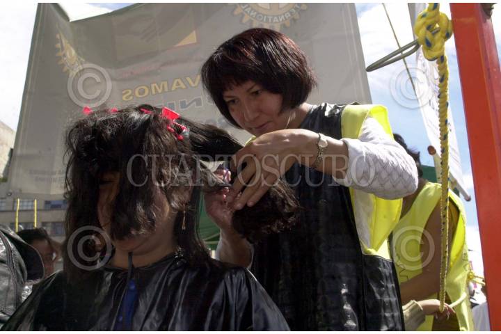 México, D.F. 22 FEBRERO 2004.- La jornada de salud no solo se consentro en consultas con dentistas, cardiologos, etc, sino que ofrecieron servicio de peluquería. Jornada , realizada en el monumento a la Revolución, en la delegación Cuauhtémoc. FOTO: Sandra Perdomo/CUARTOSCURO.COM
