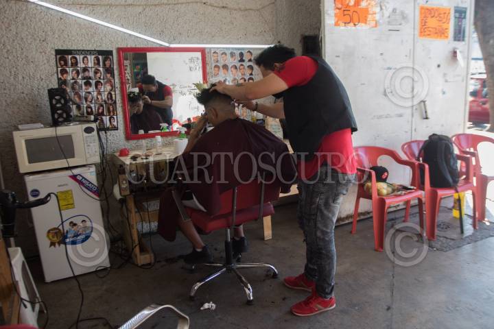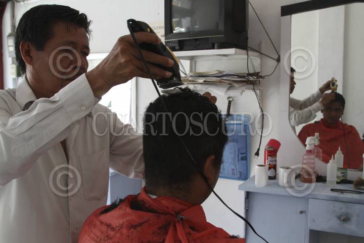 MÉXICO, D.F., 22ABRIL2015.- El asunto de cortarse el cabello es un asunto íntimo, es difícil encontrar a tu peluquero de confianza. Puede llegar a ser un momento tan pleno que hasta una sonrisa puede desprenderse del rostro de algún cliente. FOTO: MARÍA JOSÉ MARTÍNEZ /CUARTOSCURO.COM