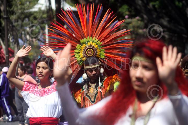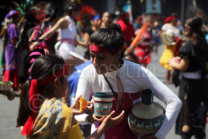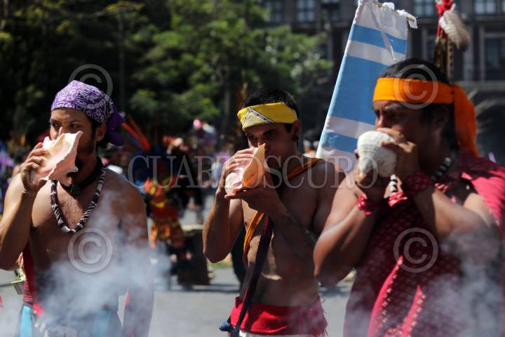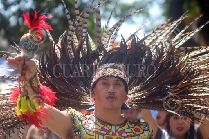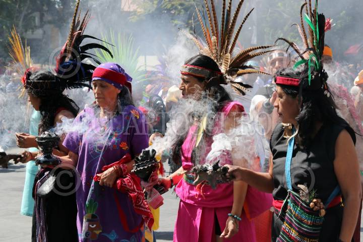 MEXICO, D.F. 18AGOSTO2005.- Le realizarón una limpia al diputado Pablo Gómez, unos danzantes en la explanada del Zócalo capitalino. FOTO: Oscar López/CUARTOSCURO.COM