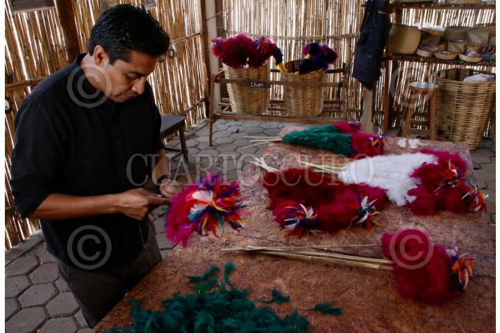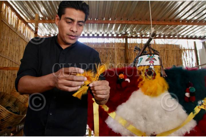 Iván Cruz López fundador del taller Buidoo Xtera Duub (La espiritualidad de la pluma), en donde le da rienda suelta a su creatividad en el arte plumario.