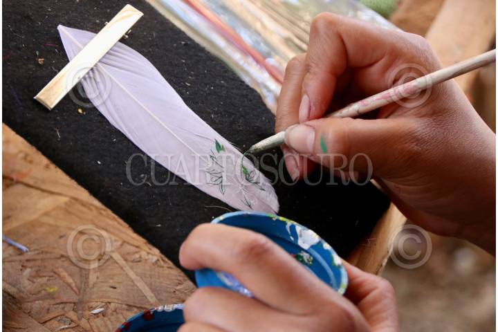 Iván Cruz López fundador del taller Buidoo Xtera Duub (La espirtualidad de la pluma), en donde le da rienda suelta a su creatividad en el arte plumario.