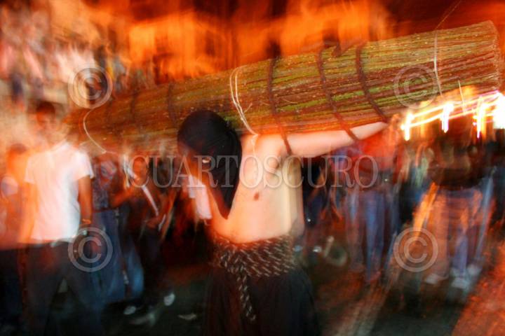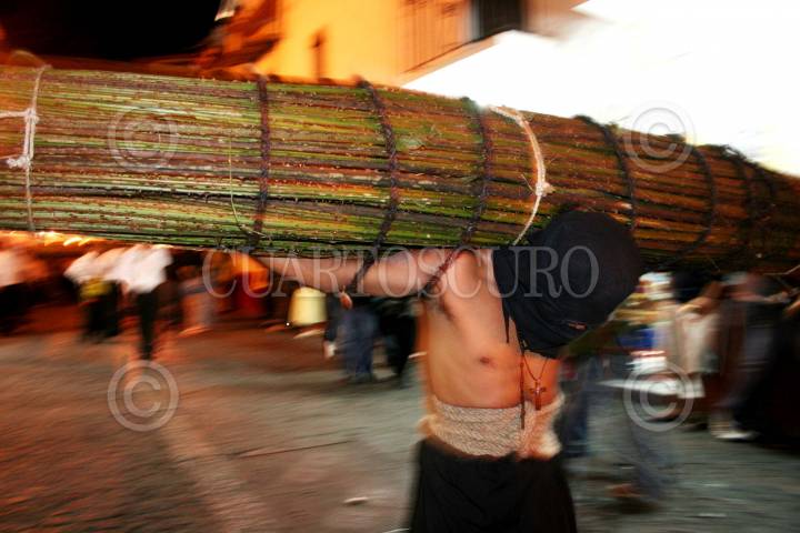 TAXCO,GUERRERO 05ABRIL2007.- Se llevaron a cabo las primeras procesiones de los peninentes quienes cargan rollos de espinas de zarza por las calles de la ciudad. FOTO: CARLOS TISCHLER/CUARTOSCURO.COM