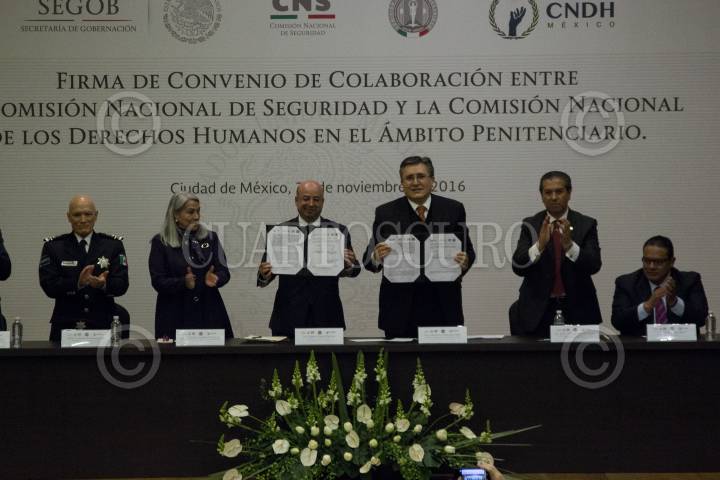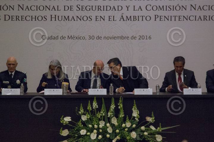 CIUDAD DE MÉXICO,30NOVIEMBRE2016.- Renato Sales Heredia, Comisionado Nacional de Seguridad, y Luis Raúl González Pérez, presidente de la Comisión Nacional de Derechos Humanos (CNDH), firmaron el convenio de colaboración entre ambas dependencia para el cumplimiento de los derechos humanos en el ámbito penitenciario. FOTO: GALO CAÑAS /CUARTOSCURO.COM