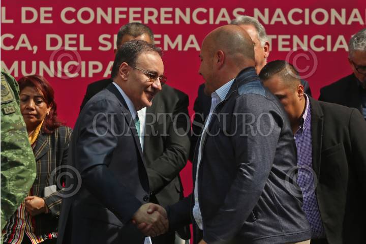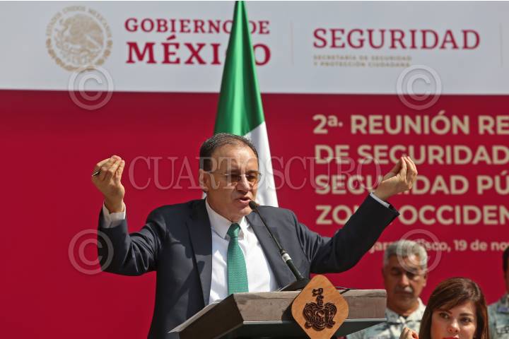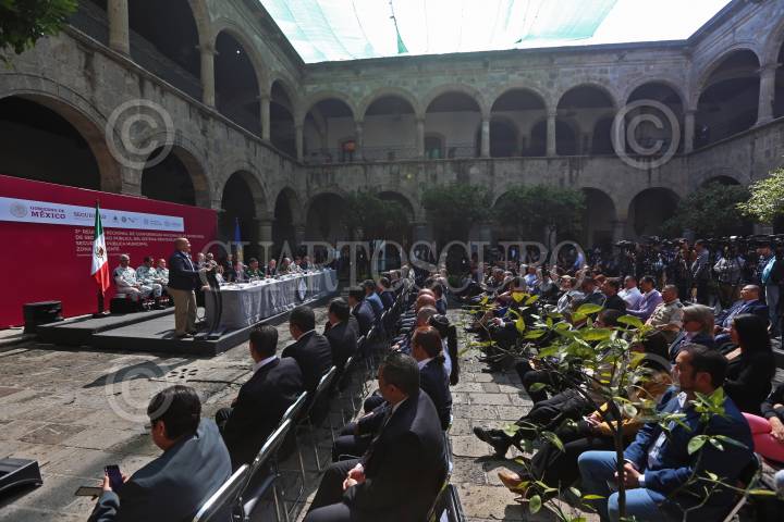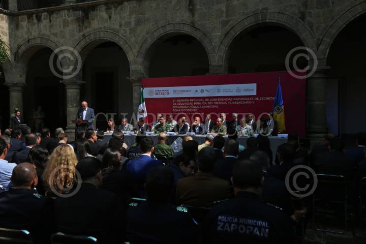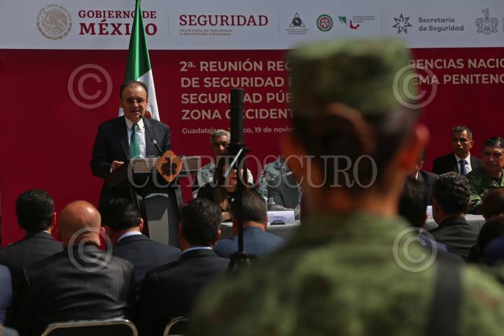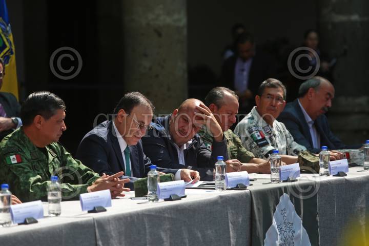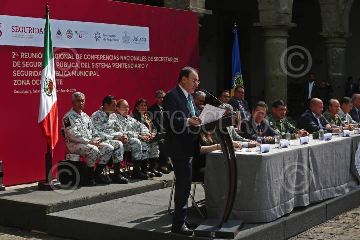 GUADALAJARA, JALISCO, 19NOVIEMBRE2019.- Alfonso Durazo Montaño Secretario de Seguridad y Protección Ciudadana del Gobierno Federal, Enrique Alfaro Ramírez Gobernador del Estado y demás autoridades militares, estatales y municipales, encabezaron la Segunda Reunión Regional de Conferencias Nacionales de Secretarios de Seguridad Publica , del Sistema Penitenciario y Seguridad Publica Municipal Zona Occidente, esto en evento que se llevo a cabo en Palacio de Gobierno. FOTO: FERNANDO CARRANZA GARCIA / CUARTOSCURO.COM