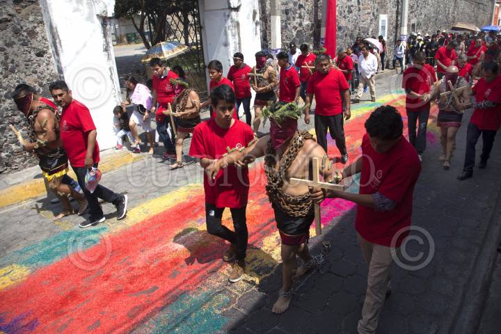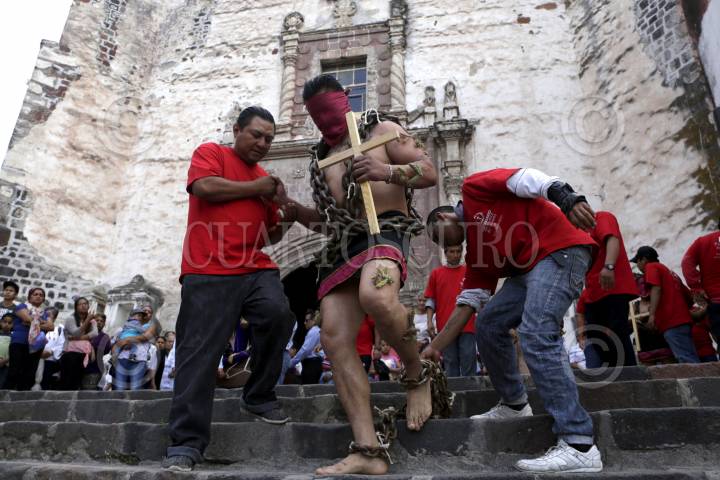 Procesión de Viernes Santo en la comunidad de Huaquechula, Puebla.